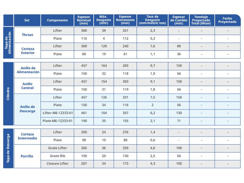 Ante este escenario, el equipo ME Elecmetal reemplazó el diseño SMX por PolyLight, placa con insertos de acero laminado y un elemento fundido para el sector del levantador. Este diseño buscar absorber las desviaciones operacionales del Molino SAG, las cuales se traducen en una alta cantidad de impactos.