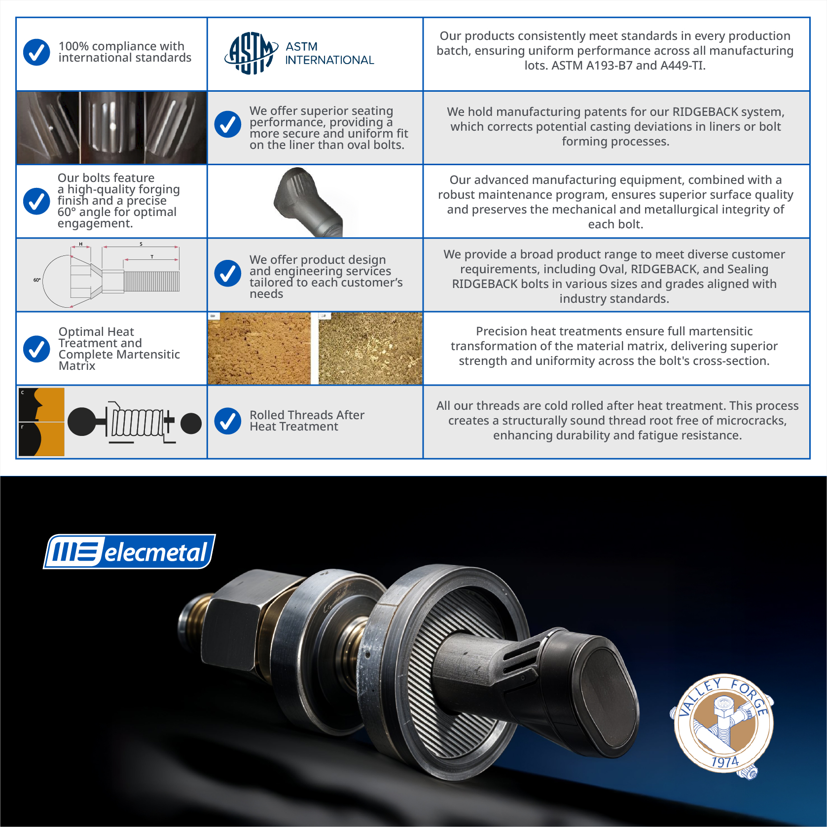 To further enhance reliability, ME Elecmetal conducted a liner-specific study to determine the optimal installation tension. The solution incorporated Ridgeback – ValleyForge bolts, offering a superior fit and secure seating within the liner bores.